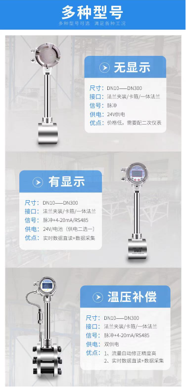 KS-WALUGB系列管道蒸汽流量計(渦街流量計)是基于卡門渦街原理而研制的一種具有國際先進水平的新型流量計,該儀表由于采用了智能一體化的設計理念,因此,該儀表具有結構緊湊、安裝使用維護方便的特點。由于它具有其他流量計不可兼得的優點,已廣泛應用工業管道中液體、飽和蒸汽、氣體的工況體積和質量流量的測量。